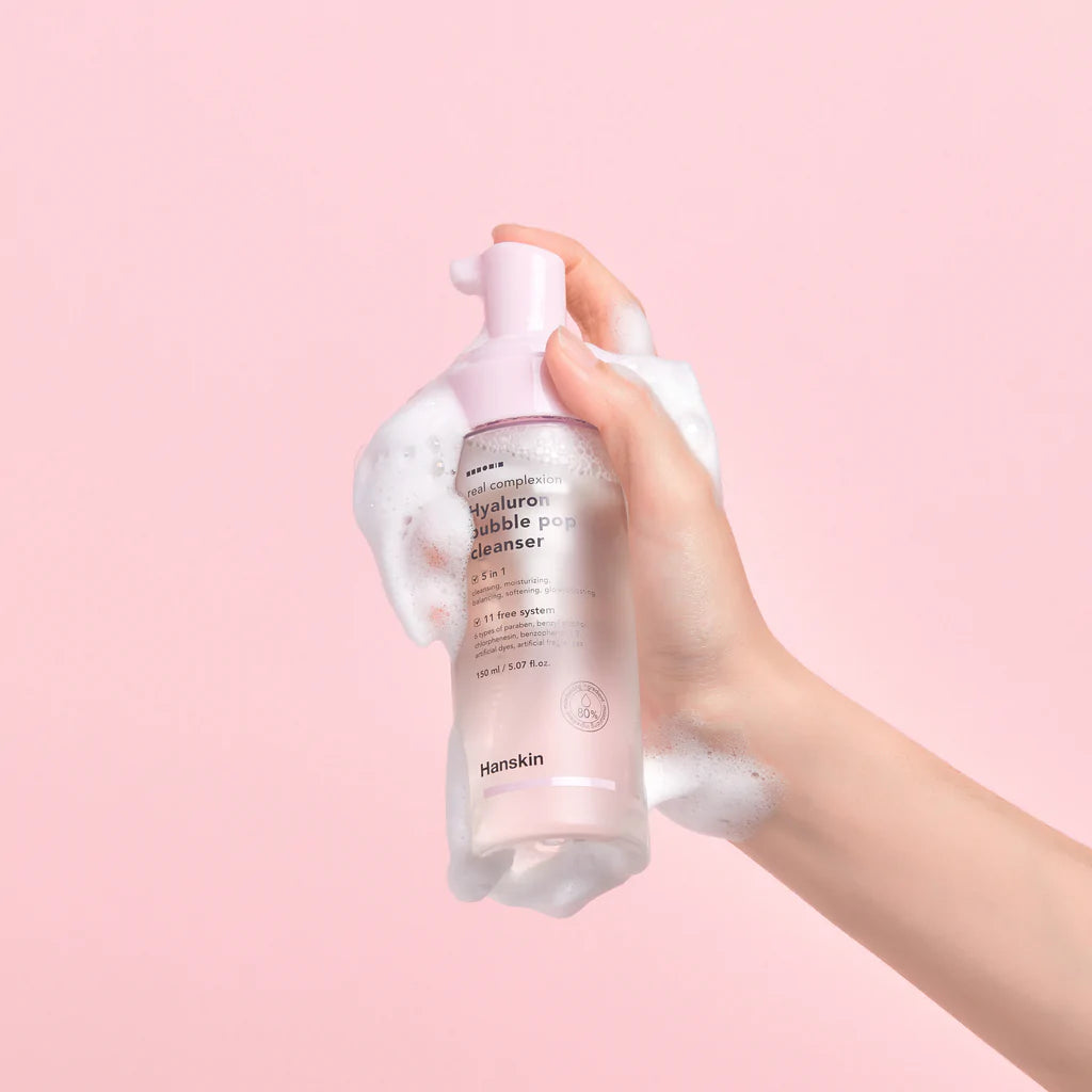 Revitalize your skin with Hanskin Real Complexion Hyaluron Bubble Pop Cleanser, a foaming cleanser that delivers a burst of hydration while deeply purifying the skin. This innovative cleanser transforms from a dense foam to a luxurious bubble texture, thoroughly removing dirt, makeup, and impurities. Infused with 10% Hyaluronic Acid, it helps to lock in moisture, leaving your skin plump, soft, and refreshed. Suitable for all skin types, this cleanser not only cleans but also hydrates, ensuring your skin feels balanced and nourished after every wash.