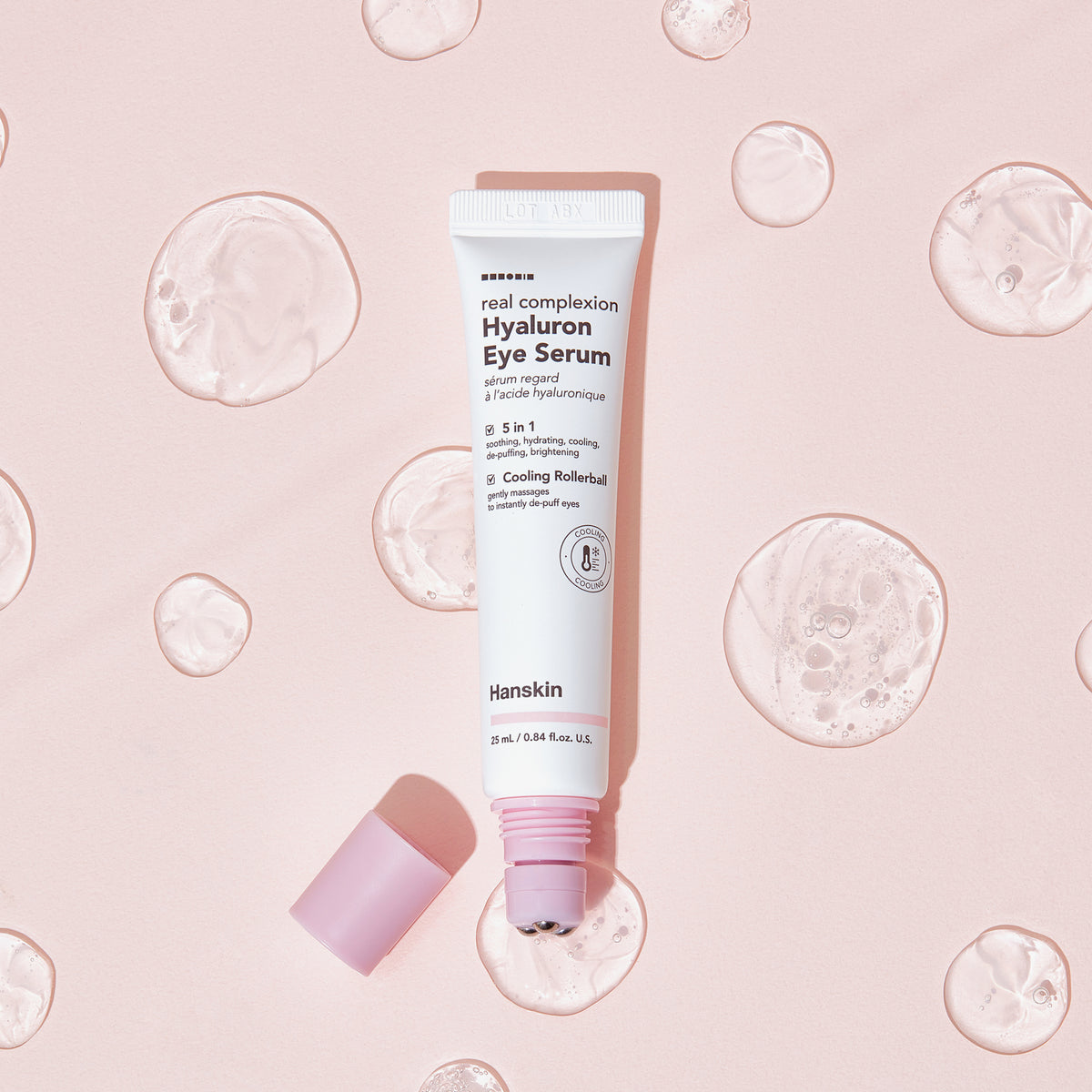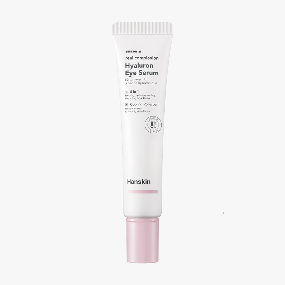 Wake up tired eyes with this lightweight yet deeply hydrating Real Complexion Hyaluron Eye Serum. Packed with 5 types of hyaluronic acid, it delivers intense moisture to the delicate under-eye area, helping to plump fine lines and reduce the look of dryness. The formula also includes caffeine to de-puff and brighten, while panthenol and madecassoside calm and reinforce the skin barrier. Its cooling metal applicator boosts circulation and adds a soothing touch to your routine. Ideal for anyone looking to combat puffiness, dryness, and early signs of aging around the eyes.