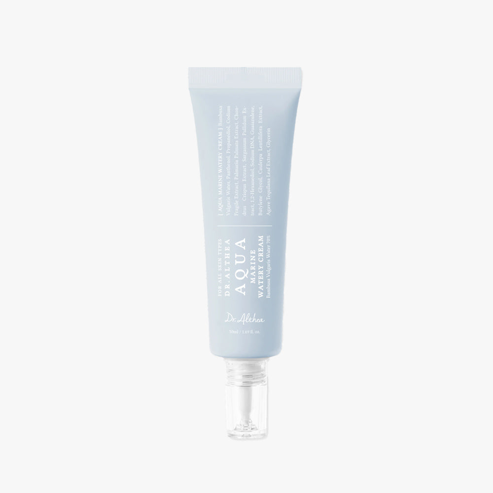 Quench dehydrated skin with the Aqua Marine Watery Cream, a refreshing gel-cream moisturizer designed to deliver long-lasting hydration without heaviness. Infused with deep sea water, hyaluronic acid, and a blend of botanical extracts, this cream helps restore moisture balance while soothing irritation and redness. Its lightweight, fast-absorbing texture makes it ideal for oily, combination, and sensitive skin types. Enriched with niacinamide and ceramides, it also strengthens the skin barrier, brightens dullness, and leaves your skin feeling cool, plump, and smooth — like a splash of hydration in every application.